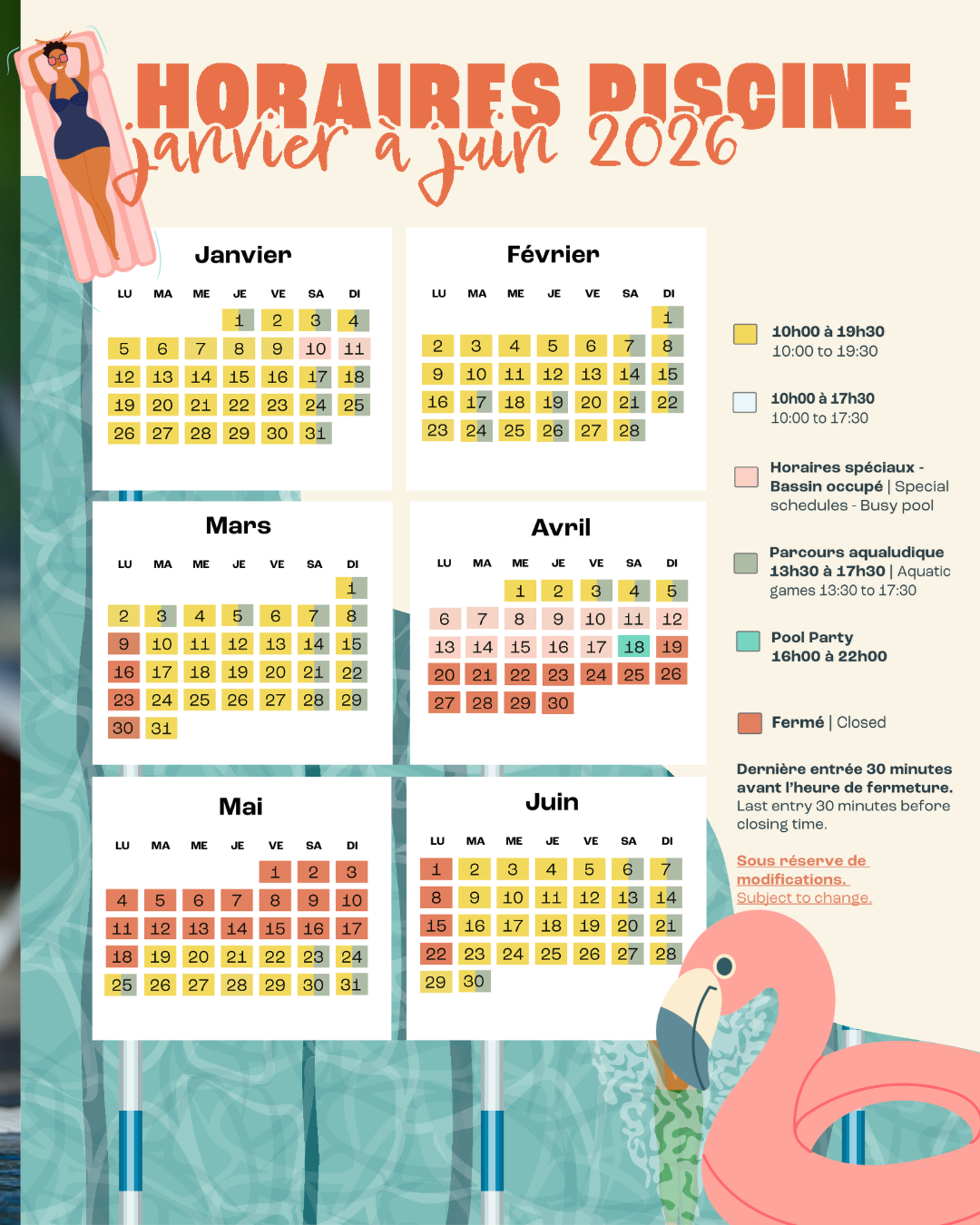 Ce qu’il faut savoir avant de mettre son maillot dans son sac ces prochaines semaines 👙👀 :- 🗓️ Fermeture piscine du dimanche 19 avril au lundi 18 mai 2026 inclus pour maintenance et travaux d’entretien.