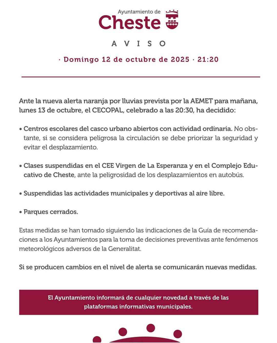 Ante la Alerta Naranja se suspenden las actividades deportivas municipales al aire libre (EDM) y el cierre de instalaciones deportivas municipales descubiertos.