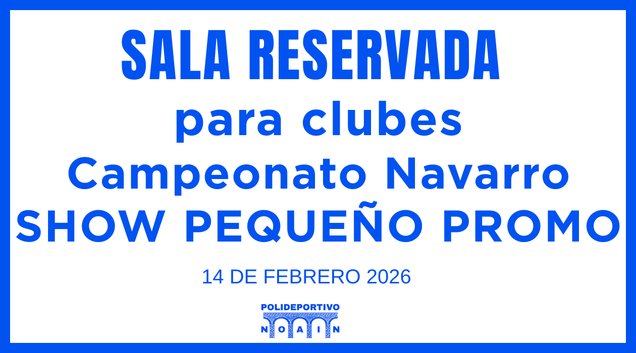El próximo sábado 14 de febrero no se podrá utilizar la sala 2 como ampliación del gimnasio por la necesidad del Club de patinaje ADN NOAIN por el Campeonato Navarro de Show Pequeño Promo.