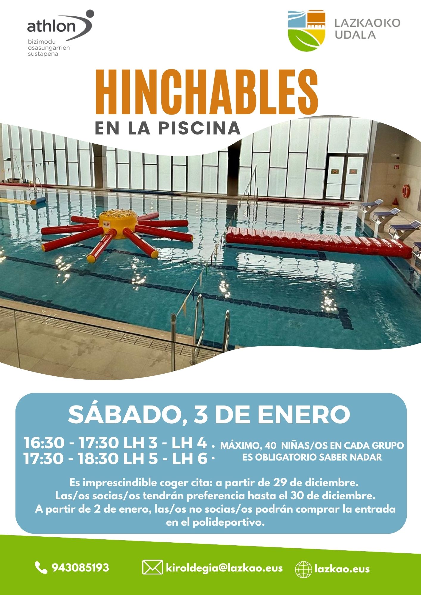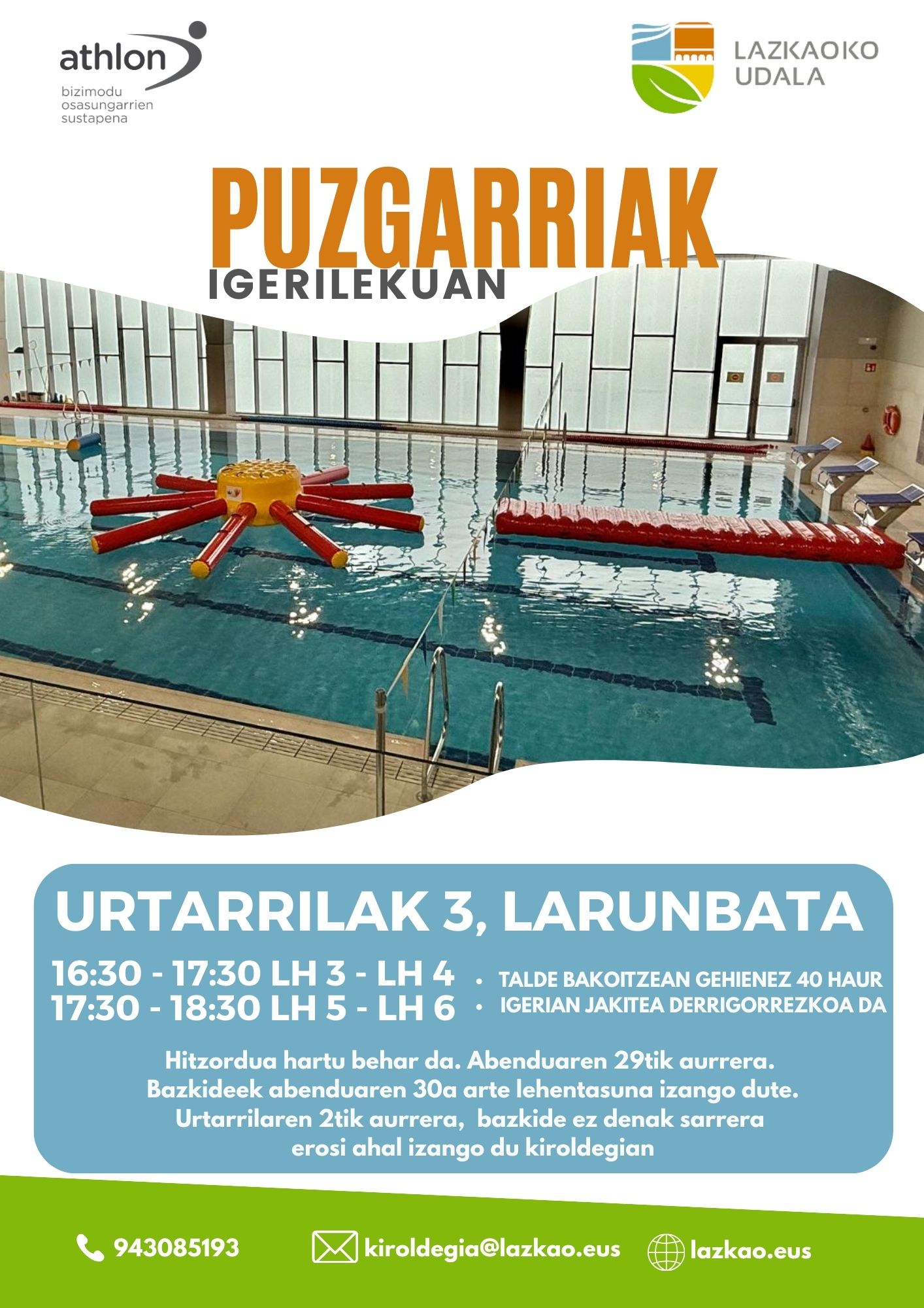 NOTA: Quienes sois socio/as del polideportivo podréis acudir al polideportivo de Ordizia: