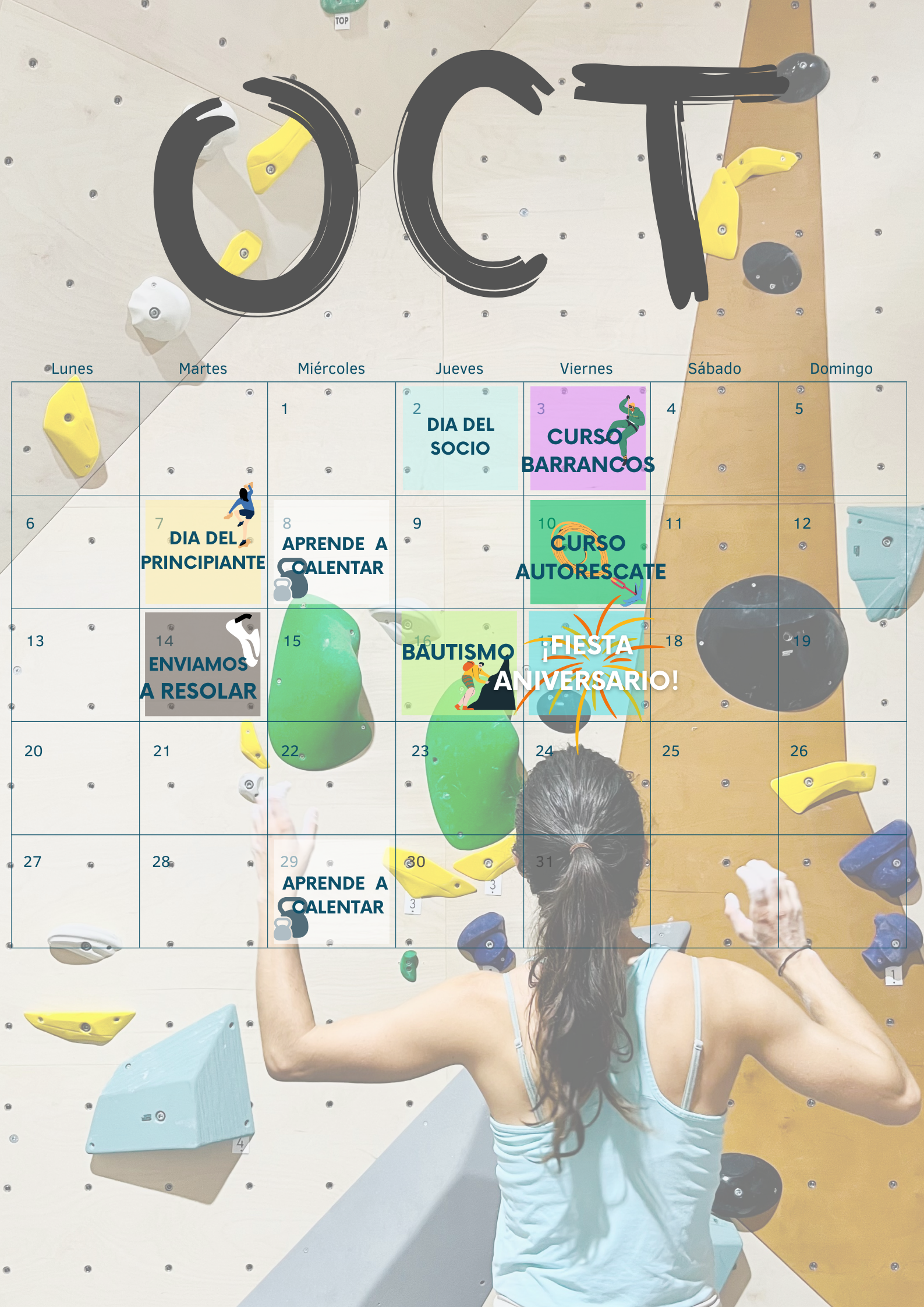 Encendemos la música, apagamos las luces y os esperamos para celebrar con escalada, juegos, sorteos y el mejor ambiente.