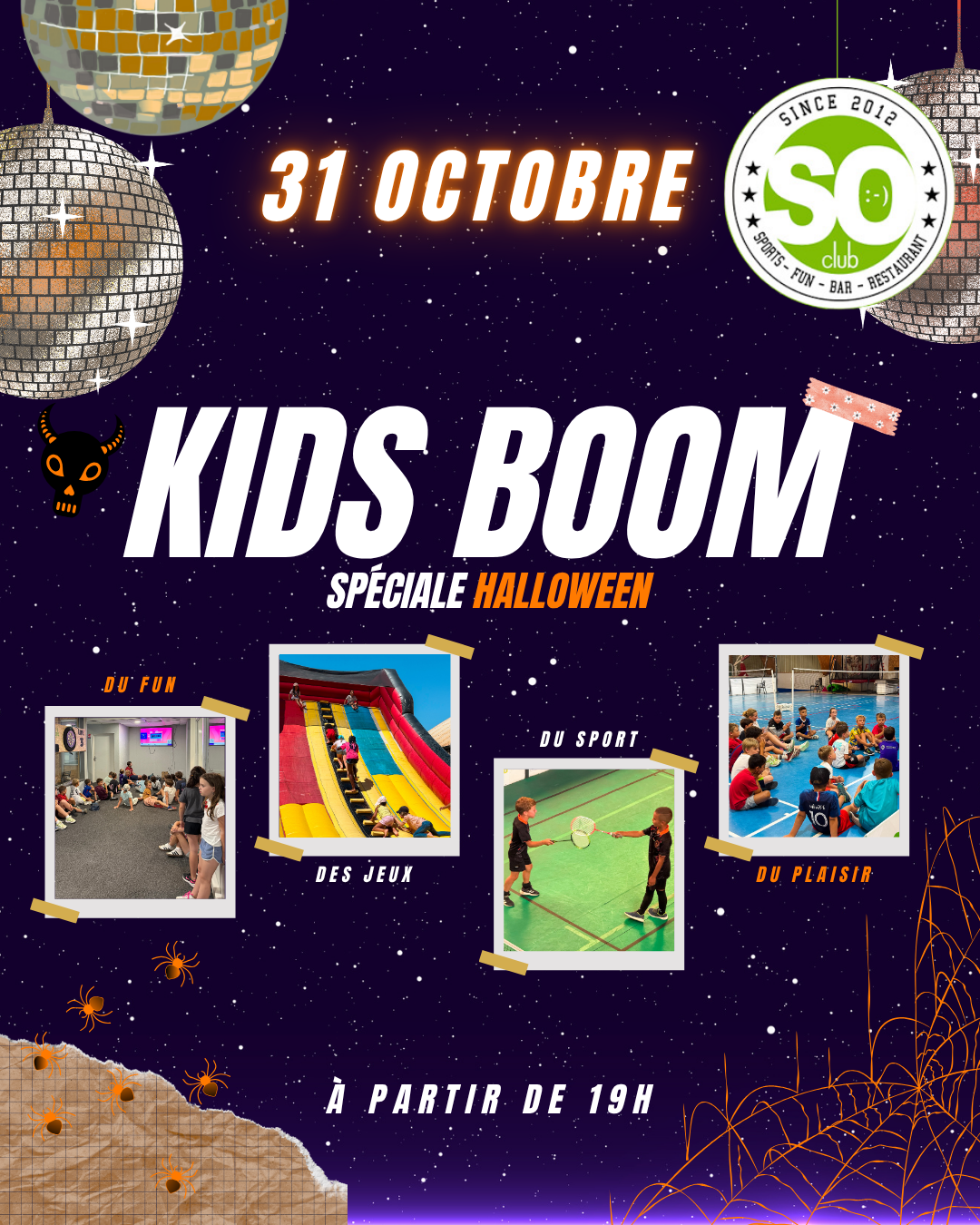 👻 Pour les enfants : KID’S BOOM HALLOWEEN Au programme : déguisements effrayants, élection du meilleur costume, jeux rigolos, mini-sport, et une ambiance festive pour s’amuser en toute sécurité !