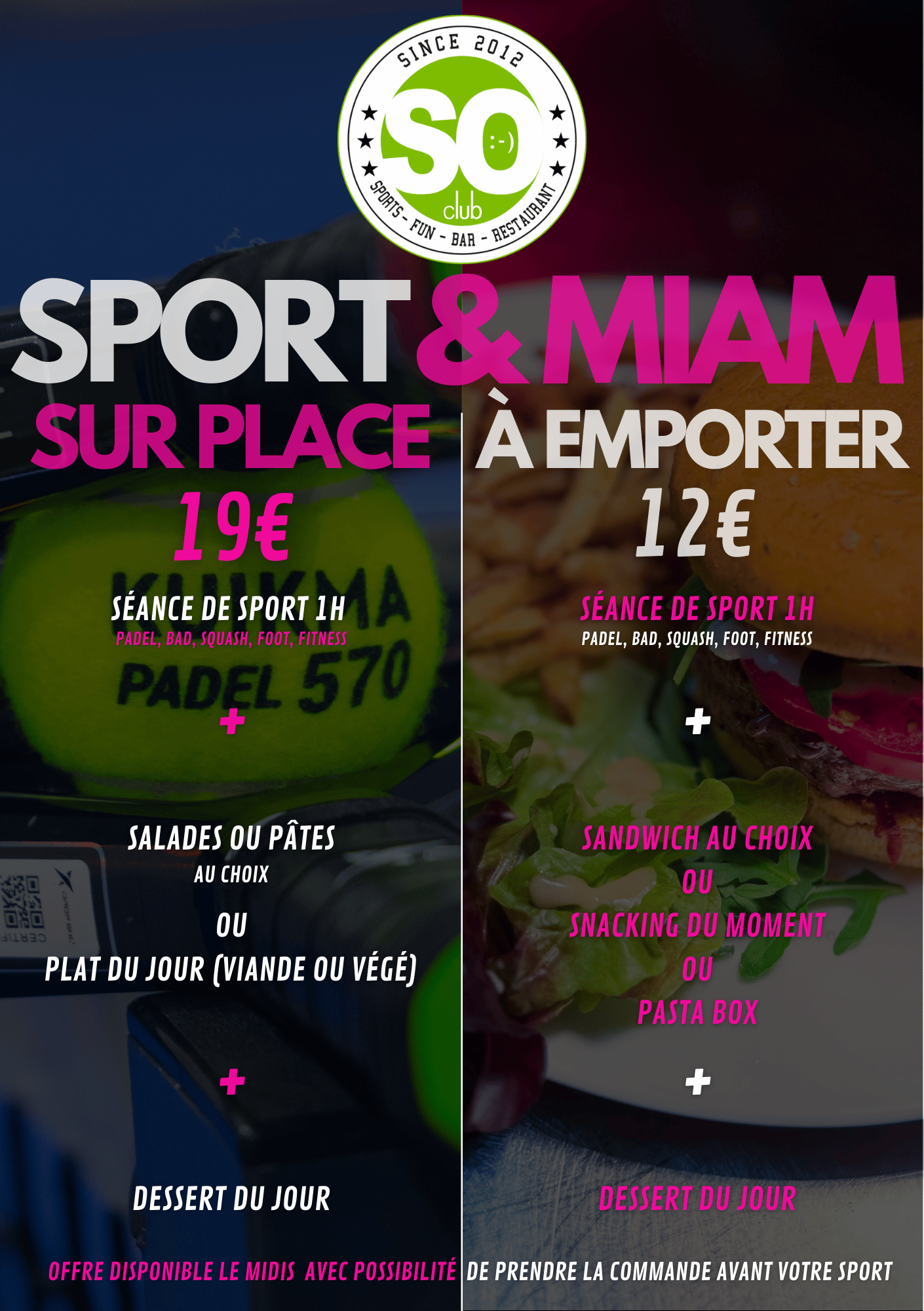 PROFITEZ DE L'OFFRE SPORT & MIAM 🏸🍝