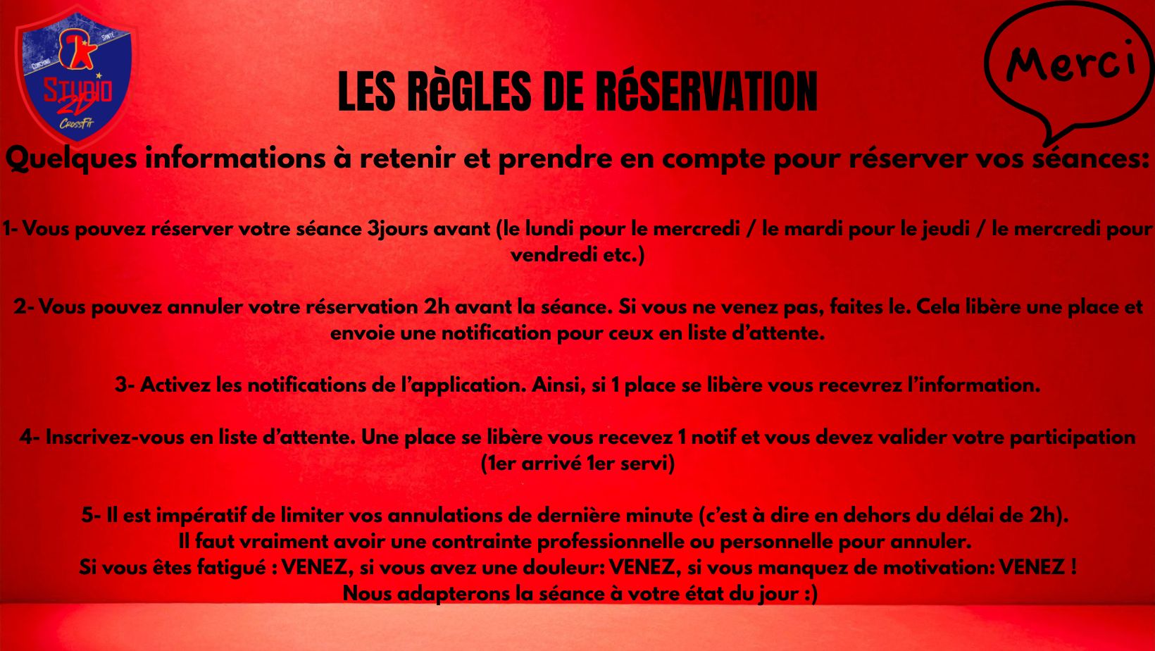 2- Vous pouvez annuler votre réservation 2h avant la séance. Si vous ne venez pas, faites le. Cela libère une place et envoie une notification pour ceux en liste d’attente.