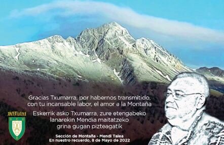Sin embargo, este año, el verdadero protagonista del día será Jesús María Garísoain Goñi, Txumarra, el que fuera delegado y máximo representante de la sección desde que cogió sus riendas en la década de los años setenta. Tras su fallecimiento el pasado 2 de febrero, los miembros de la sección quieren dedicarle un homenaje, para tener un gesto emotivo con quien los lideró durante tantos años, en los que se desvivió para sacar adelante importantes actos, como la Travesía del Pirineo, la Semana de Cine de Montaña o la Marcha a San Cristóbal.