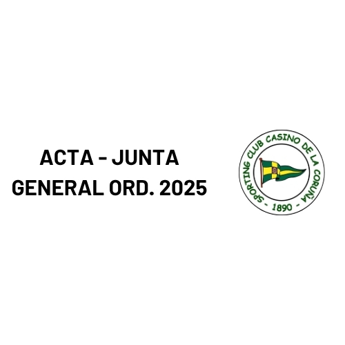 Adjuntamos el archivo correspondiente al Acta de la Junta General Ordinaria del Sporting Club Casino de La Coruña, que tuvo lugar en la 1º planta de la sede social de C/Real, el 13 de octubre del 2025.