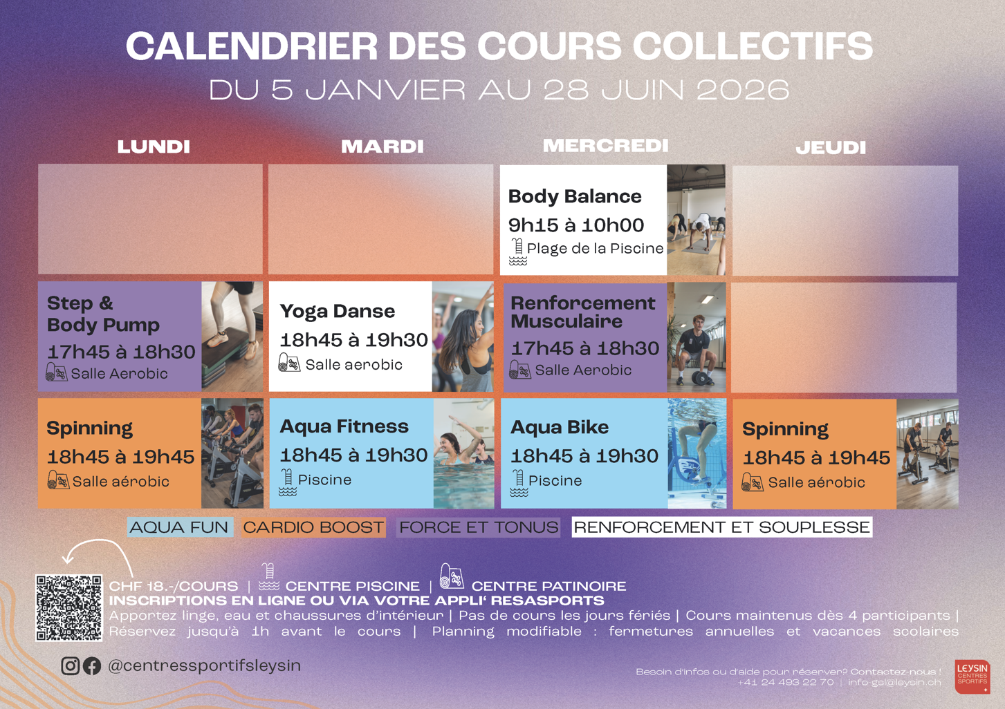 ❄️ Programme des cours collectifs - de janvier à juin 2026