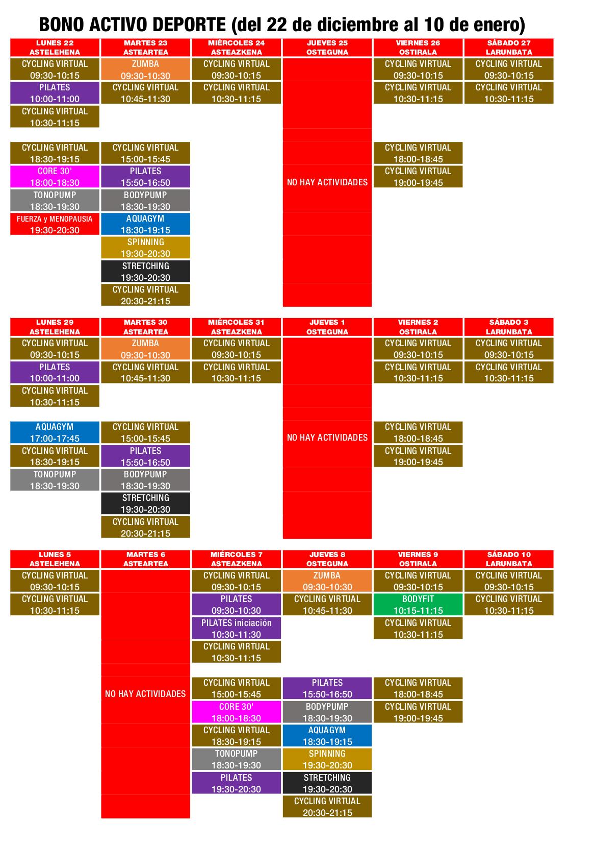 Os presentamos parrilla de actividades prevista para las próximas navidades (del 22 de diciembre al 10 de enero) para que podáis disfrutar de estos días festivos.