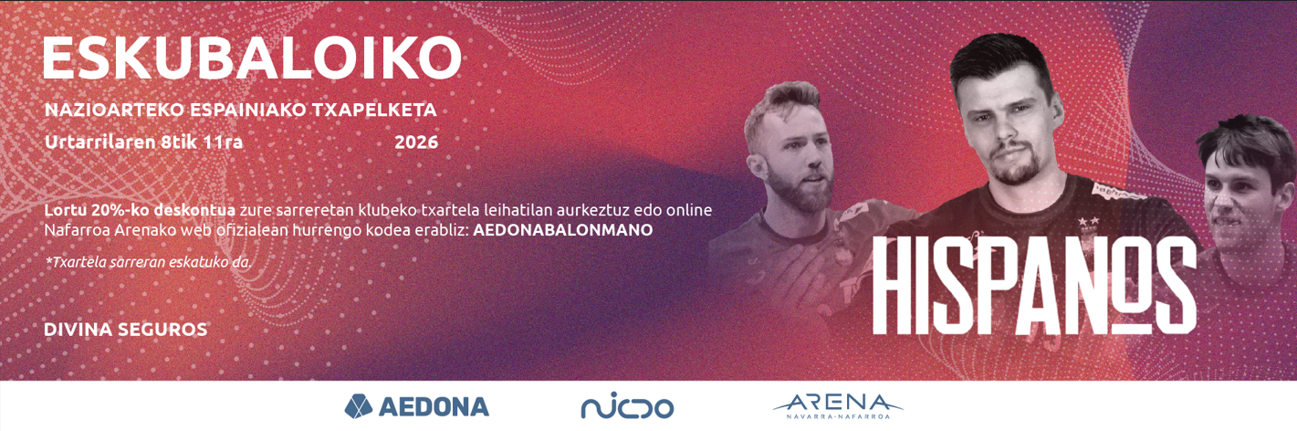 Las entradas con el 20% de descuento se pueden conseguir en taquilla presentando el carnet/app de socio/a o bien en la web oficial del Navarra Arena con el código "AEDONABALONMANO"